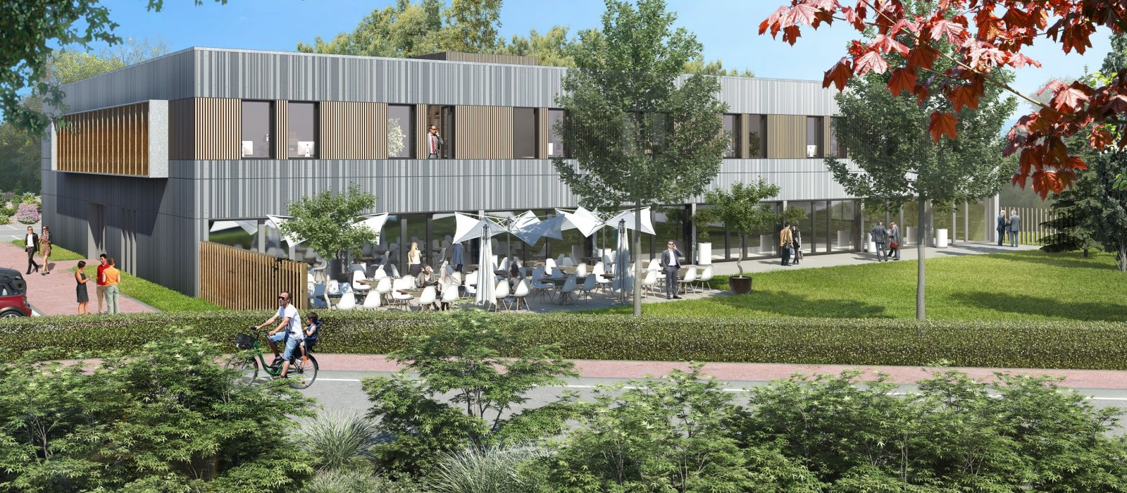 Deux bâtiments neufs viendront s’intégrer harmonieusement au projet dont un, qui sera à double vocation puisqu’il vise à accueillir du public (services) et des bureaux.