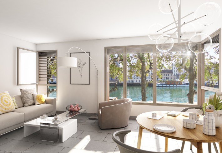 – Carrelage 40 x 40 cm ou 30 x 60 cm dans le séjour et la cuisine