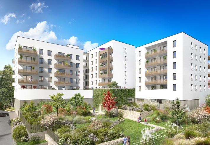 La résidence INOUI se distingue par son architecture moderne et rythmée, qui alterne attiques et percées visuelles. Conçu pour s’inscrire en harmonie avec son environnement, les lignes épurées favorisent les transparences visuelles sur le cœur d’îlot végétal. Un jardin central permet d’insuffler une bouffée d’air pur au cœur de la résidence.