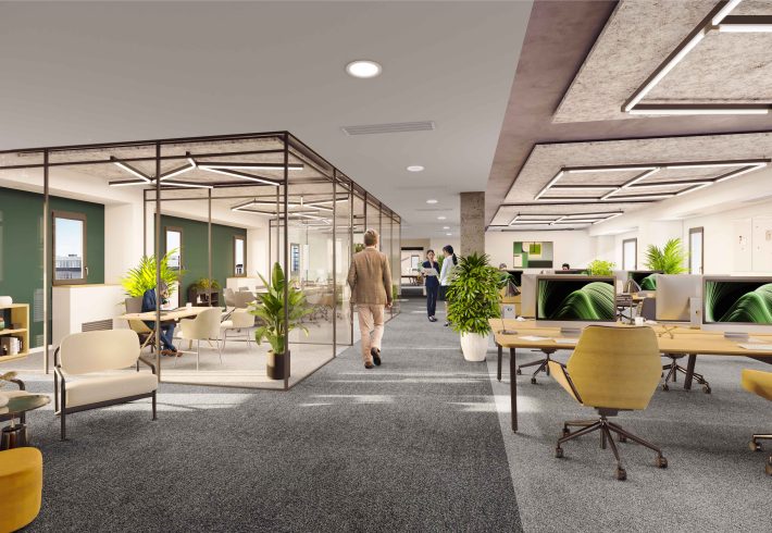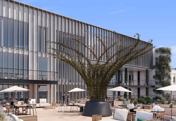 VERTICAL développe 5 185 m² de surfaces utiles réparties sur 8 niveaux, avec 4 568 m² de bureaux lumineux, 617 m² de commerces en rez-de-chaussée, 34 places de stationnement, 90 m² dédiés aux mobilités douces, et plus de 1 700 m² d’espaces extérieurs végétalisés. Ce projet répond aux attentes actuelles des entreprises, en alliant fonctionnalité, visibilité et modularité.