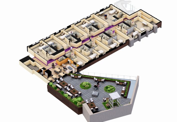 La résidence Bayard Bel-Age sera la 1ʳᵉ structure du réseau à répondre à cet enjeu en décloisonnant les services pour faciliter la prise en soin et l’accompagnement de nos aînés. Ce nouvel établissement, unique en son genre, sera entièrement dédié aux séniors et leur proposera une multitude de services :
