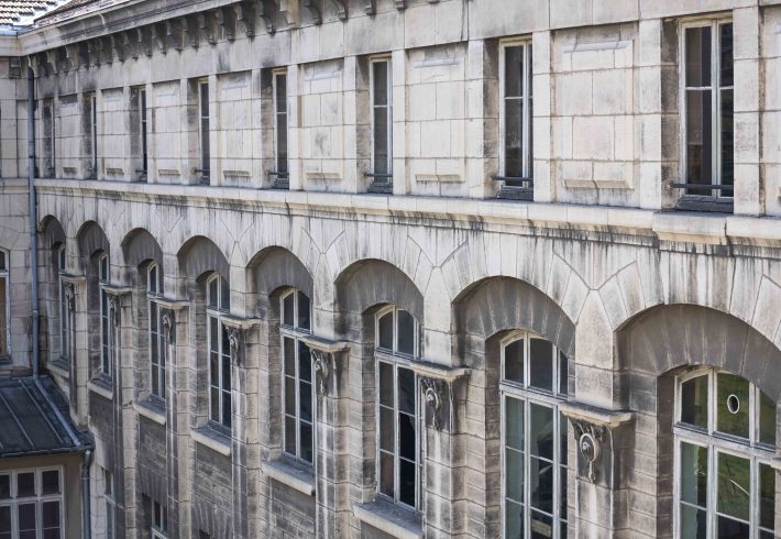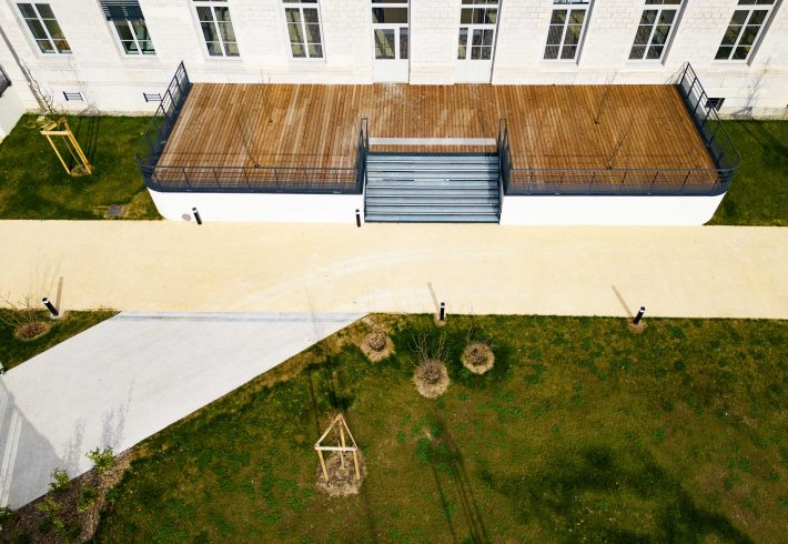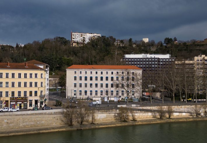 Préserver les façades en pierre et l’expression d’origine ; ouvrir la cour par la verrière réinterprétée ; relier le bâtiment à son sol par un jardin végétalisé côté quai. Une intervention mesurée qui conjugue patrimoine et qualité d’usage.